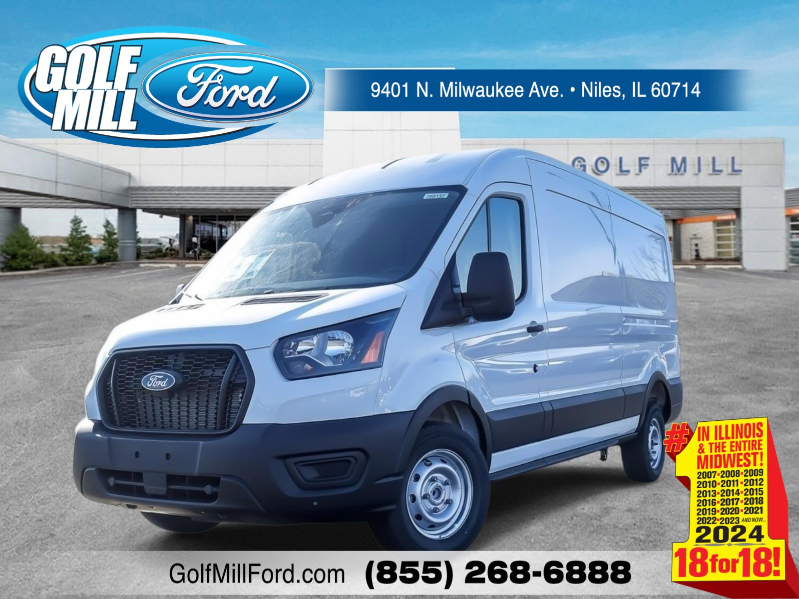 Come in for a quick visit at Golf Mill Ford, 9401 N Milwaukee Ave, Niles, IL 60714 to claim your Ford Transit Cargo Van!