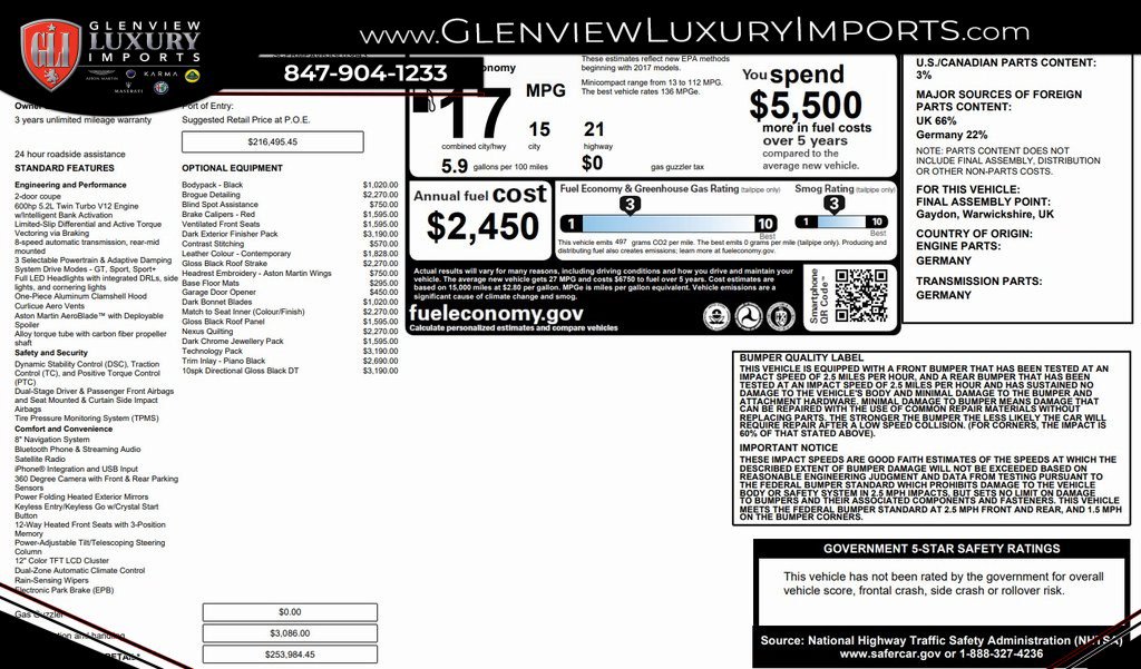 - Engine: 5.2L V12 48 Valve Bi-Turbo -inc: stop/start cylinder de-activation